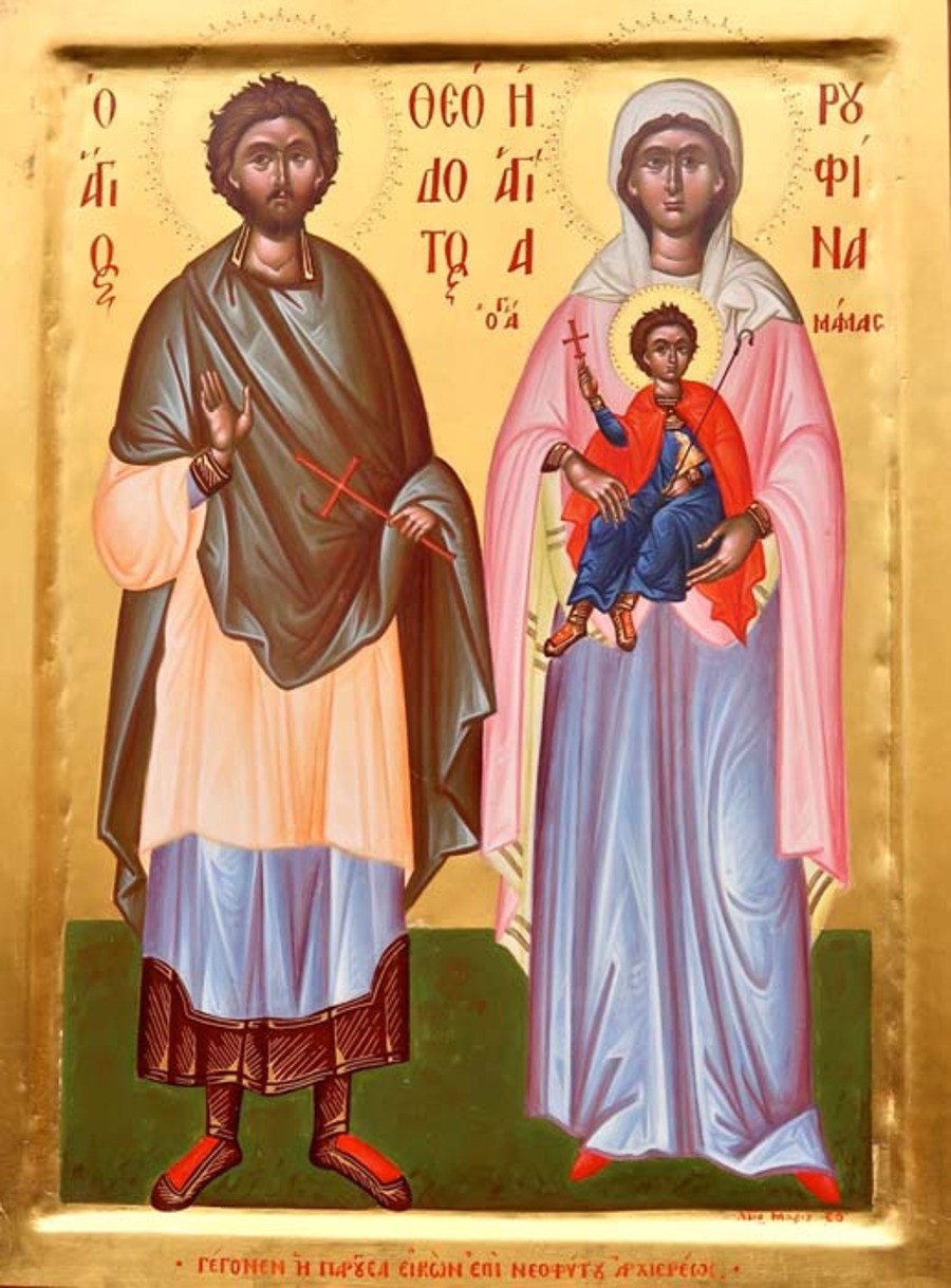 Möge die Süßeste und Allerheiligste Trinität euch segnen und mögen die glorreichen Heiligen, Großmärtyrer Mamas und seine Eltern, Märtyrer Theodotos und Rufina für uns alle beten.